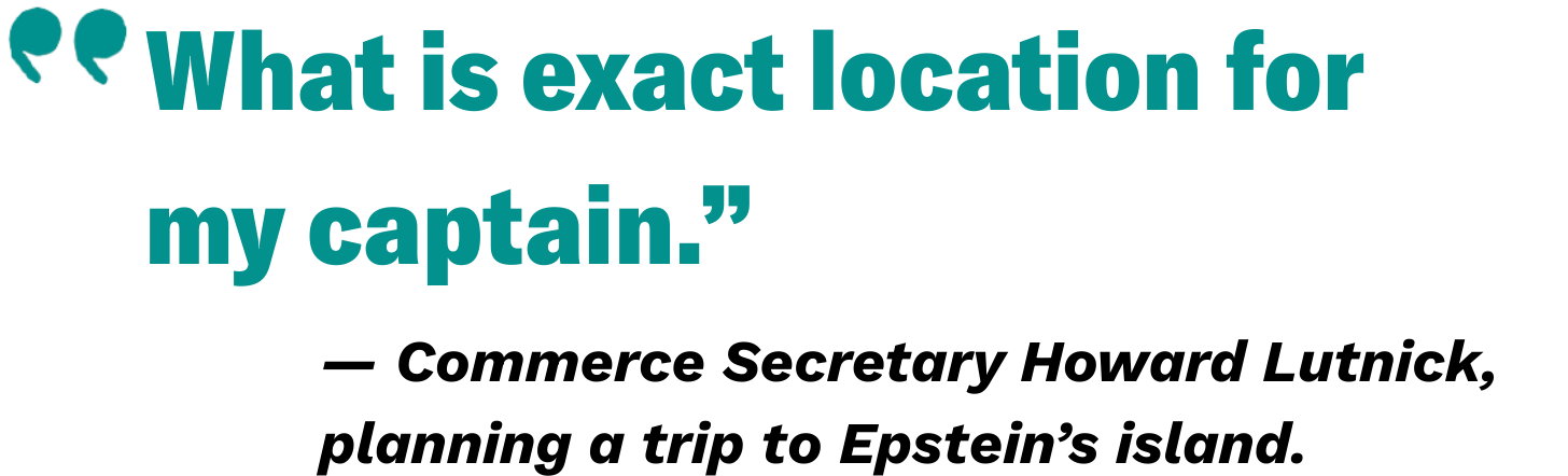 “We are landing in St Thomas early Saturday afternoon and planning to head over to St Bart’s/Anguilla on Monday at some point” Lutnick wrote. “Where are you located (what is exact location for my captain)?? Does Sunday evening for dinner sound good?”